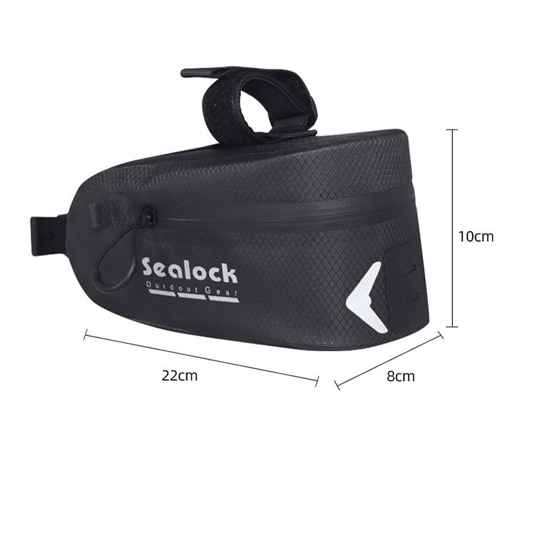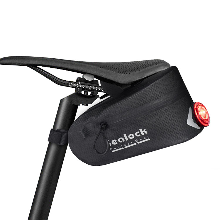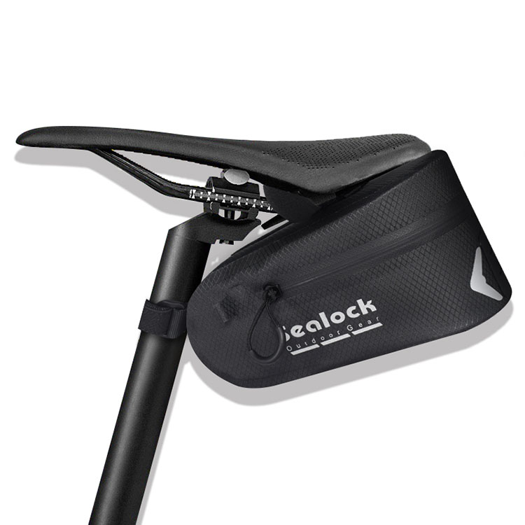 Torba siodła rowerowego jest wykonana z wodoodpornego materiału i ma zamek błyskawiczny, aby zapobiec wejściu wody przez zamek błyskawiczny. Ale nie wchłaniaj się przez długi czas, ponieważ zamki błyskawiczne nie są całkowicie wodoodporne, a woda może przenikać do szwów.
